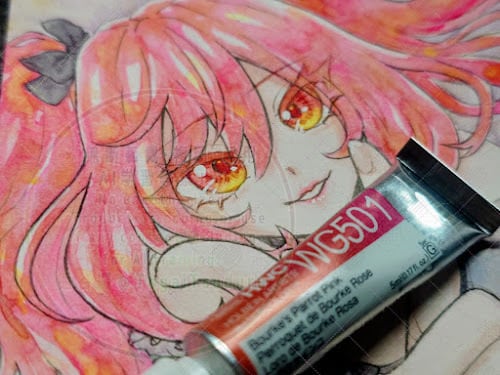 ホルベインさんの「アキクサインコ」という分離色をメインに使用した作品です。