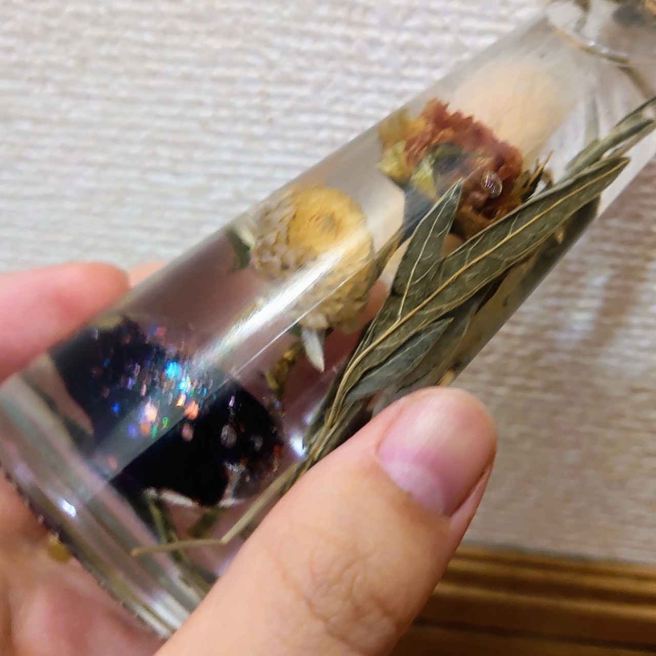 魔女シリーズのレジンのモチーフが入ったハーバリウムです。