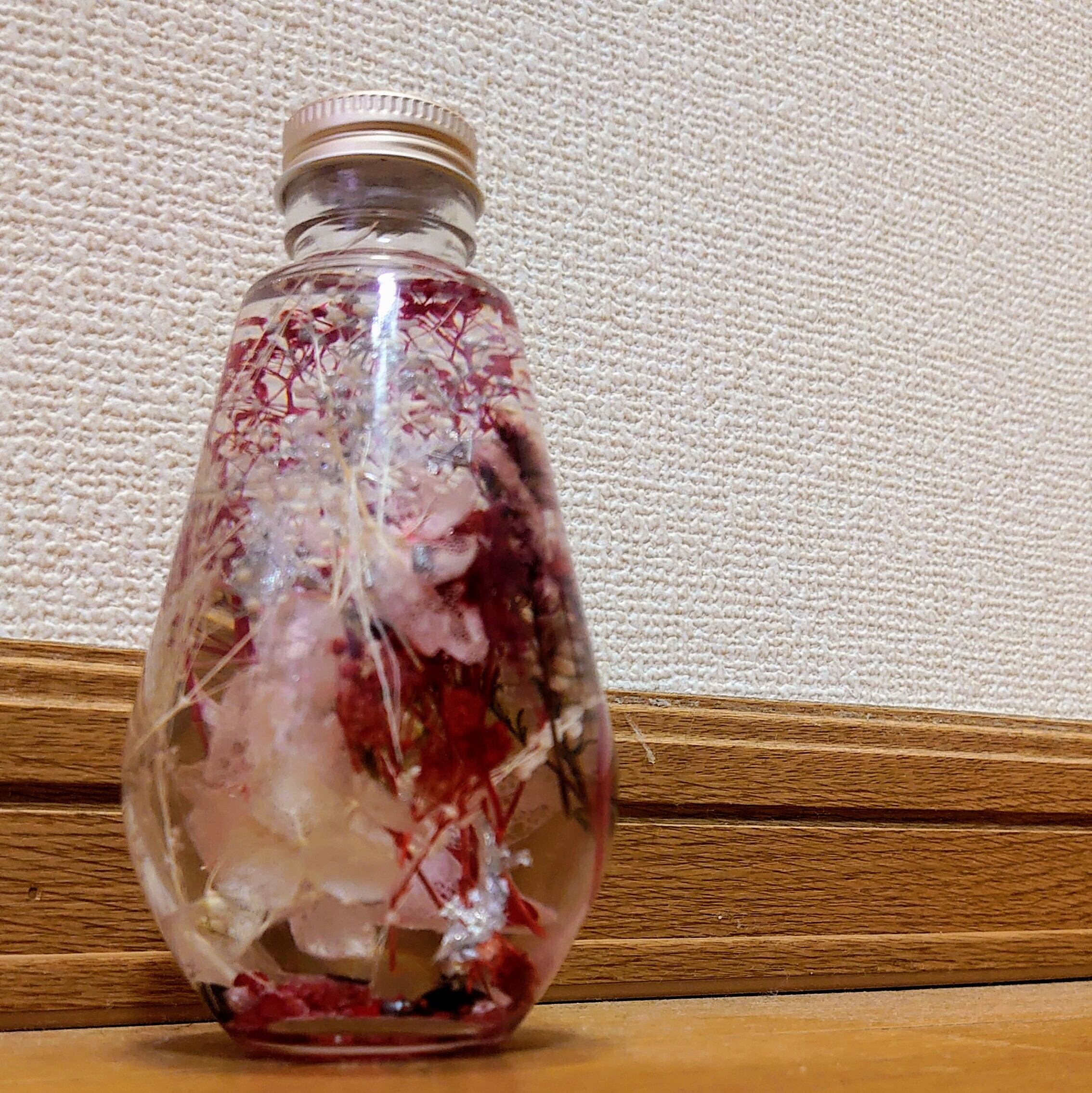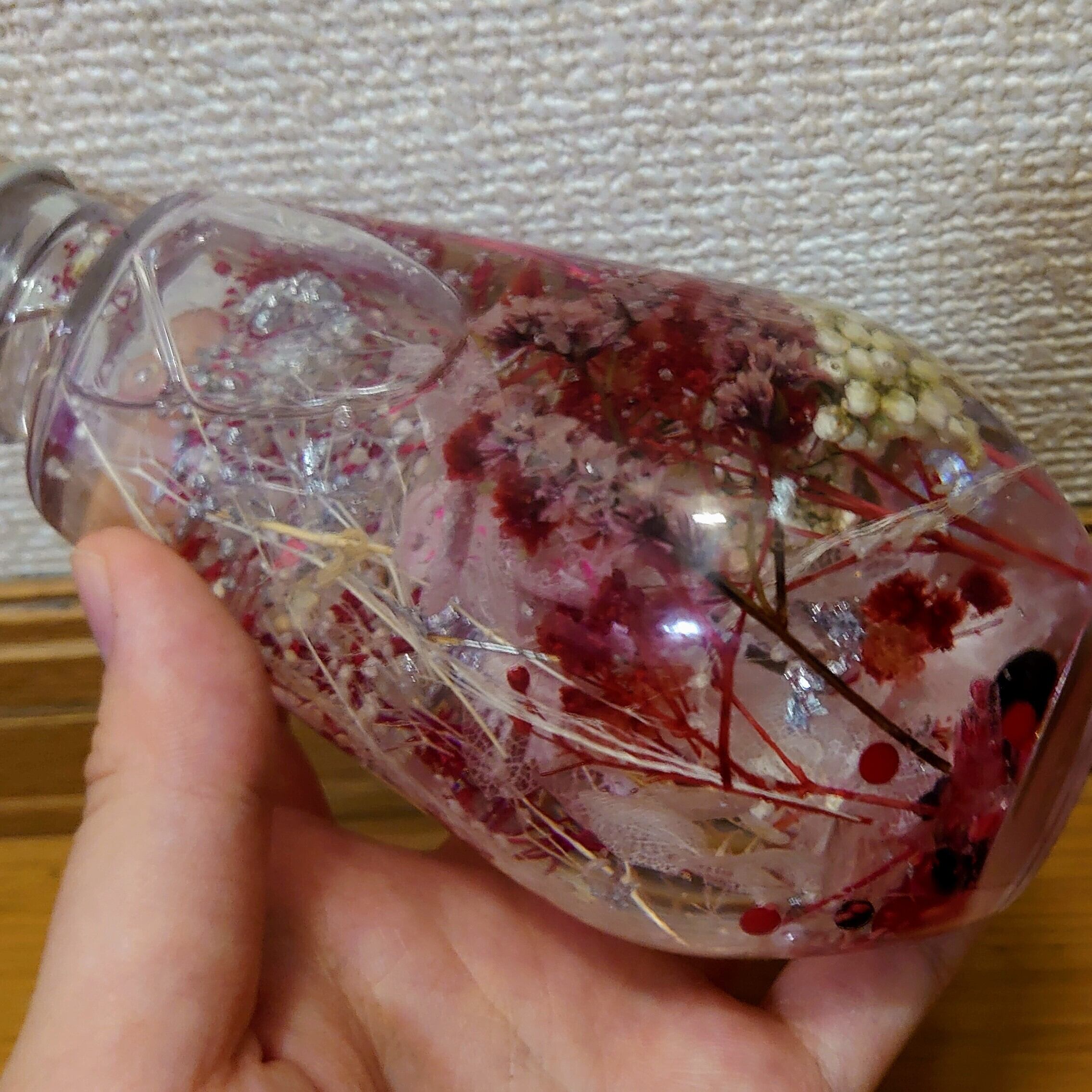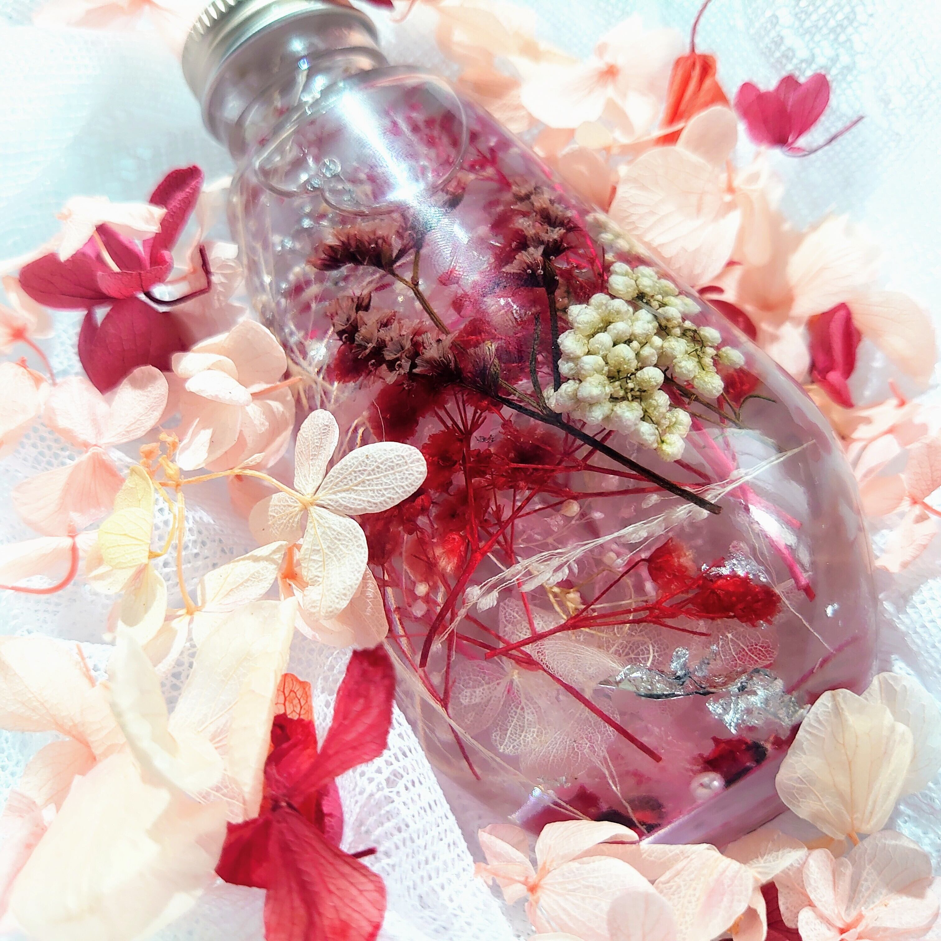 赤色を基調とし、細かいお花を閉じ込めたハーバリウムです。