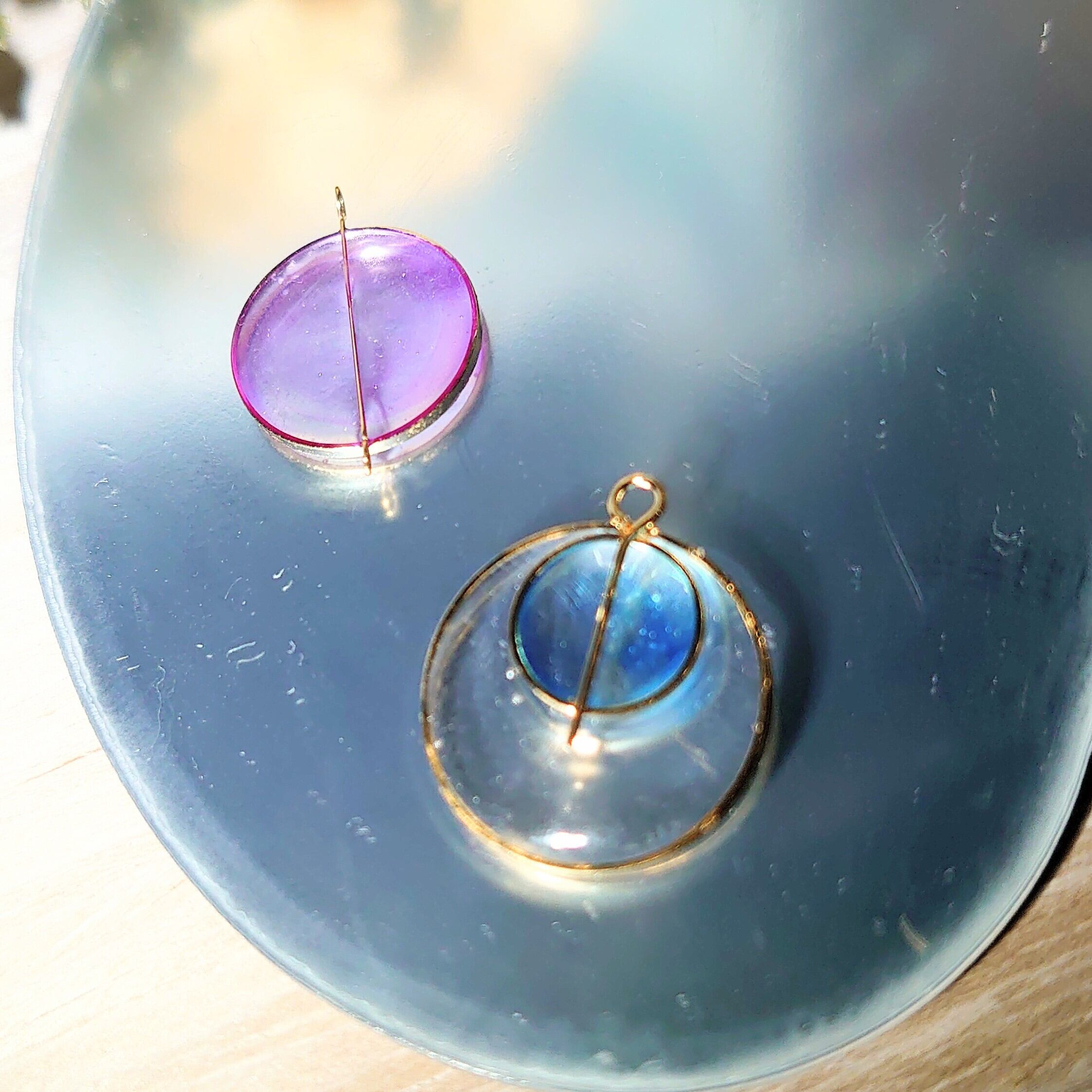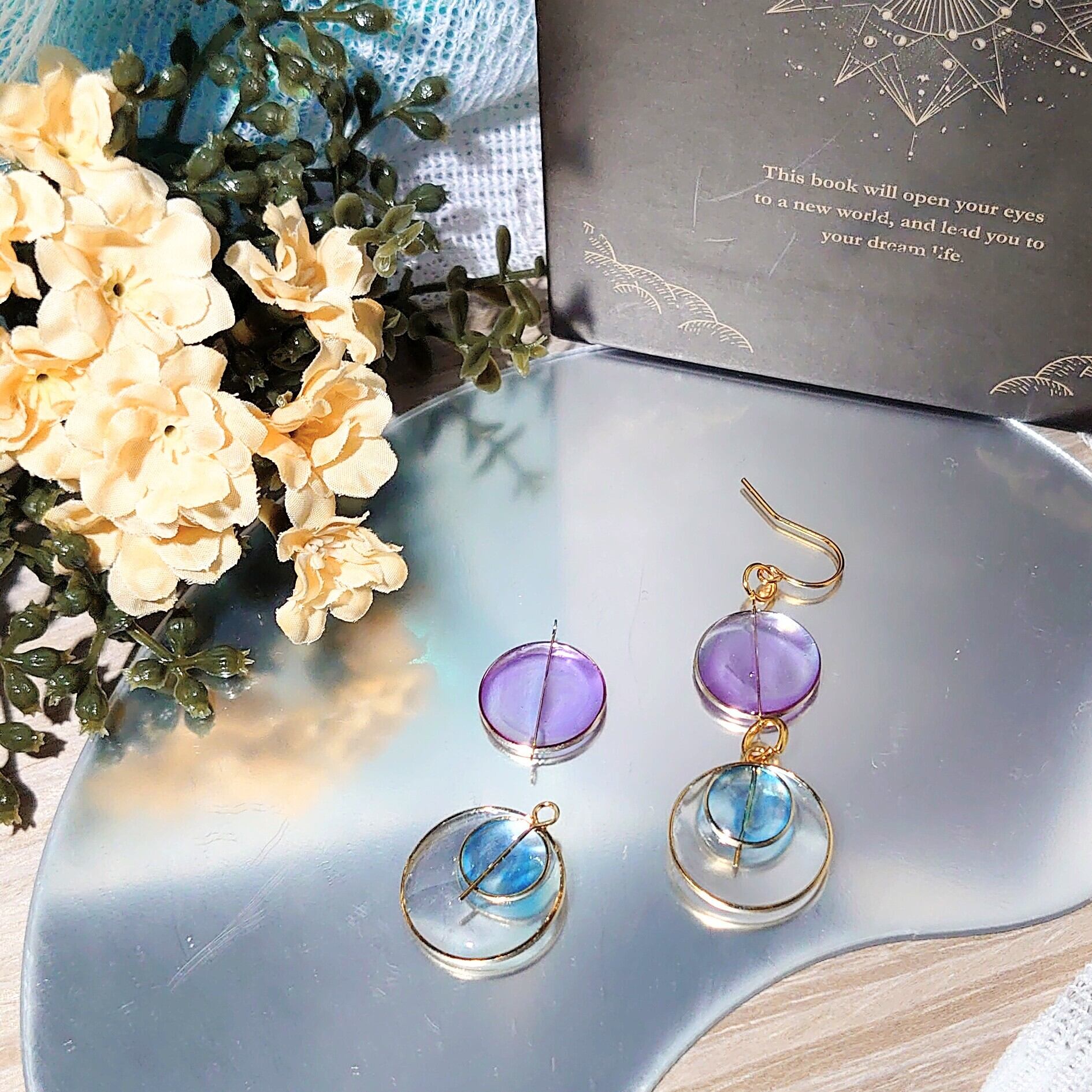 イヤリングとピアスの両方に対応する、水滴デザインのアクセサリーパーツです。透明感のある2種類の水たまりデザインは、女性らしさや優雅さを引き立てます。耳元に揺れる水滴が、さりげない華やかさを演出します。