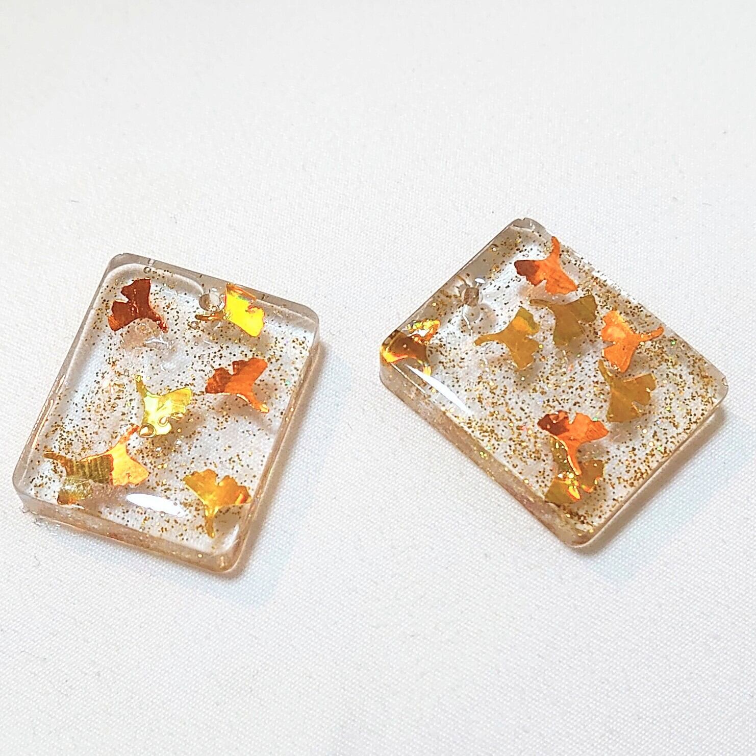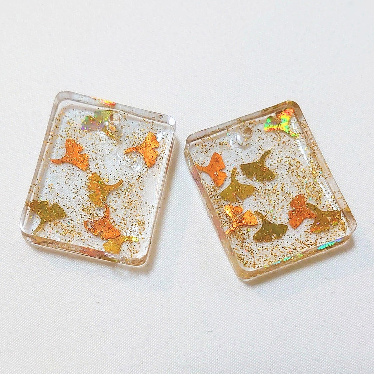 イチョウのスパンコールと金のキラキラを閉じ込めたイヤリングになります。