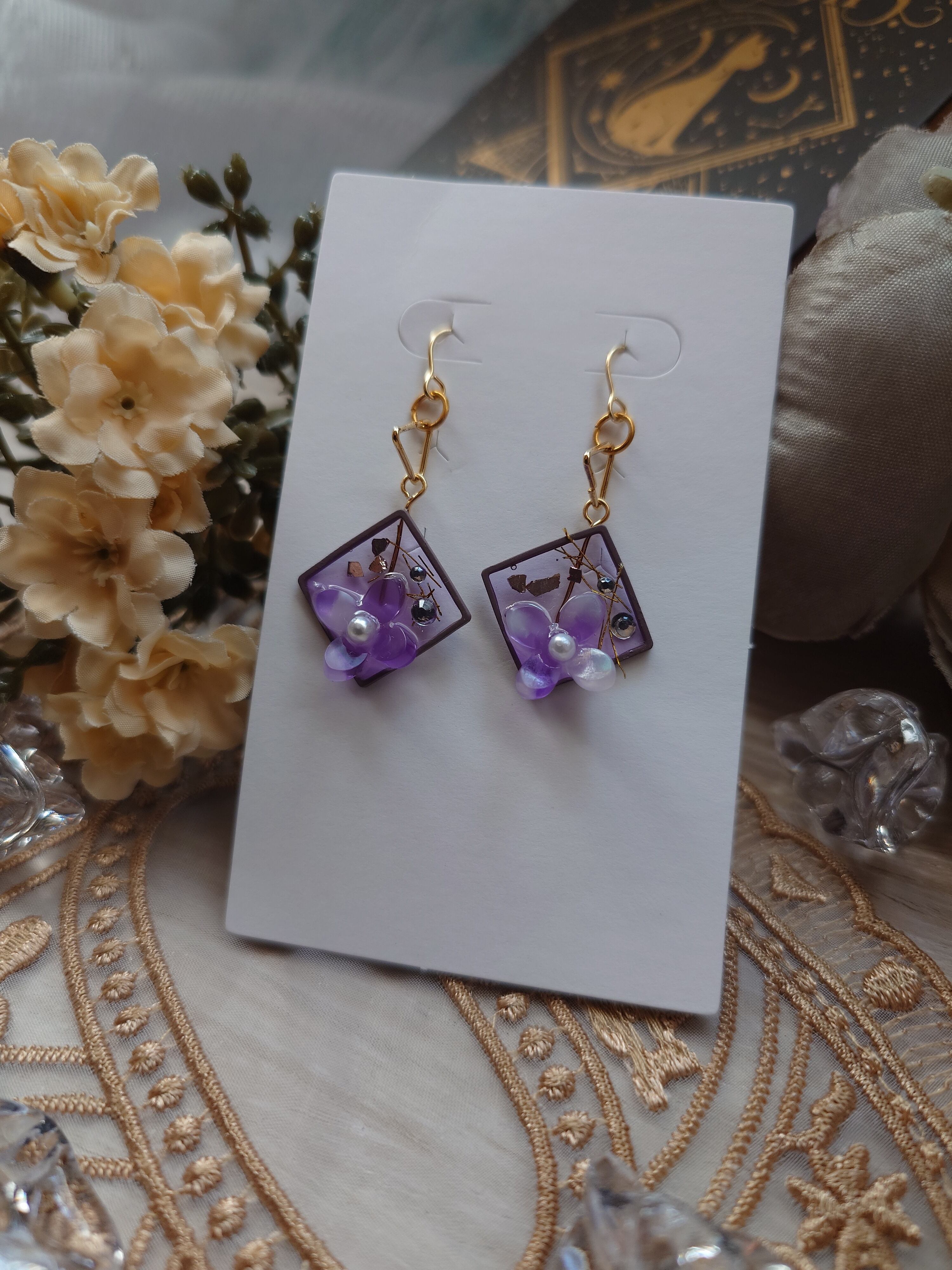 額花 むらさき イヤリング ピアス | マホウノミチビキ-magicis ductu-